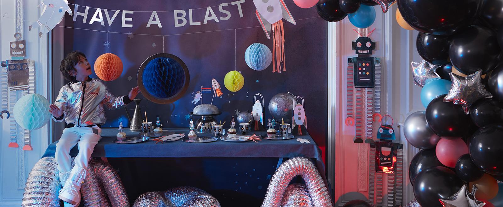 Categoria Petrecere Space – Aventura in Spațiu, include decoruri și accesorii tematice pentru petreceri inspirate din univers și explorarea spațiului.