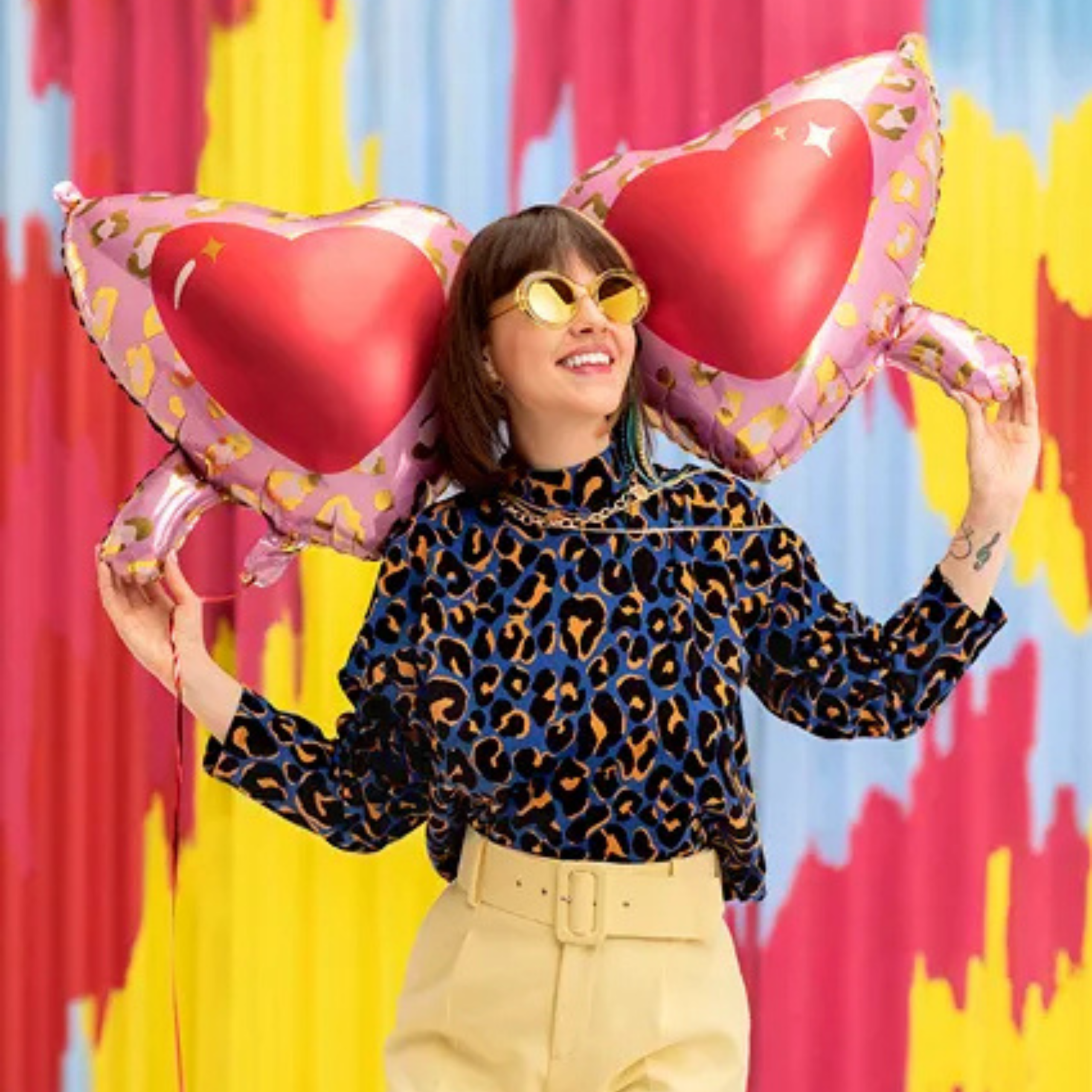 - Balon din folie in forma de ochelari cu lentile inimi. Se poate umfla cu aer sau cu heliu, umflat cu heliu poate pluti pana la 2 săptămâni.