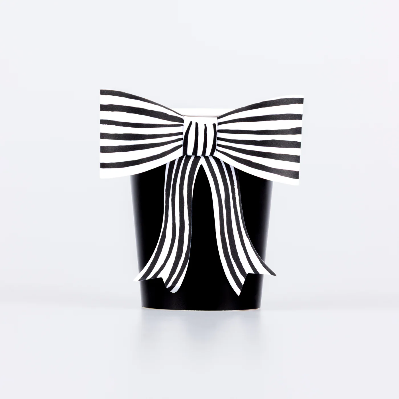 Încântă micii vrăjitori și vrăjitoare cu o petrecere de Halloween elegant decorată, cu un strop de mister. Aceste căni negre, împodobite cu funde chic cu dungi, adaugă un plus de farmec băuturilor tale de petrecere. Designul clasic alb-negru se potrivește de minune cu restul veseliei și decorațiunilor de Halloween.